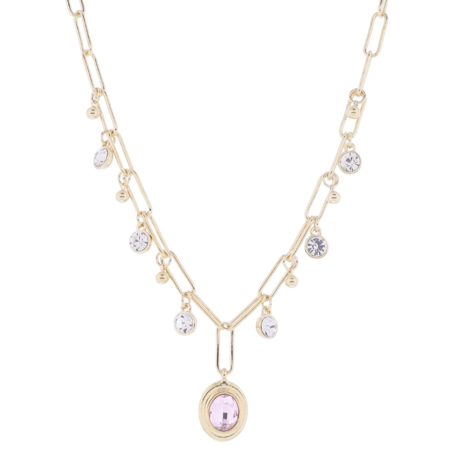16" Clear Crystal and MiniGold Ball Station Dangles and Oval Light Pink Crystal Necklace