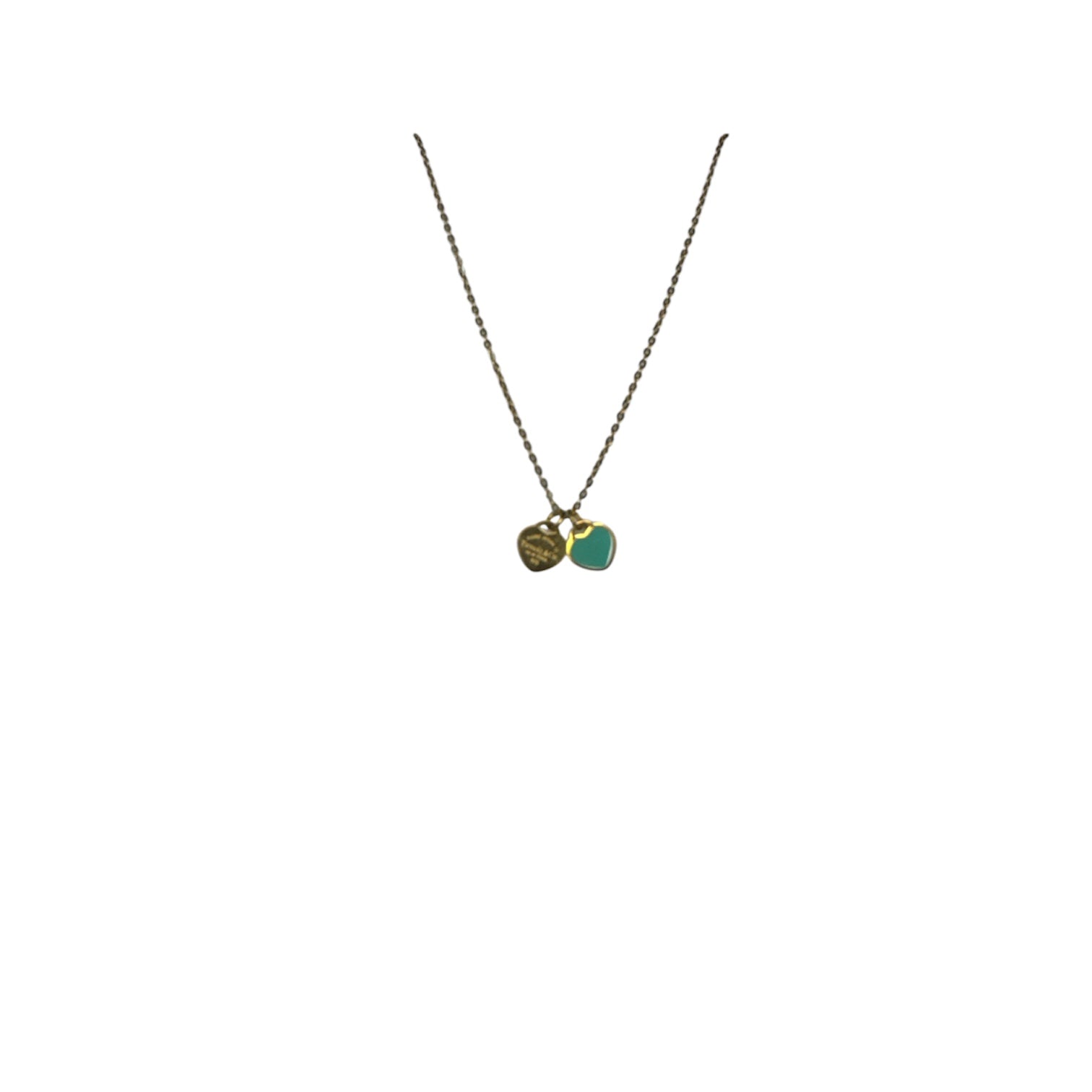 Mini Return Teal Heart and Gold Heart Neckless - Waterproof