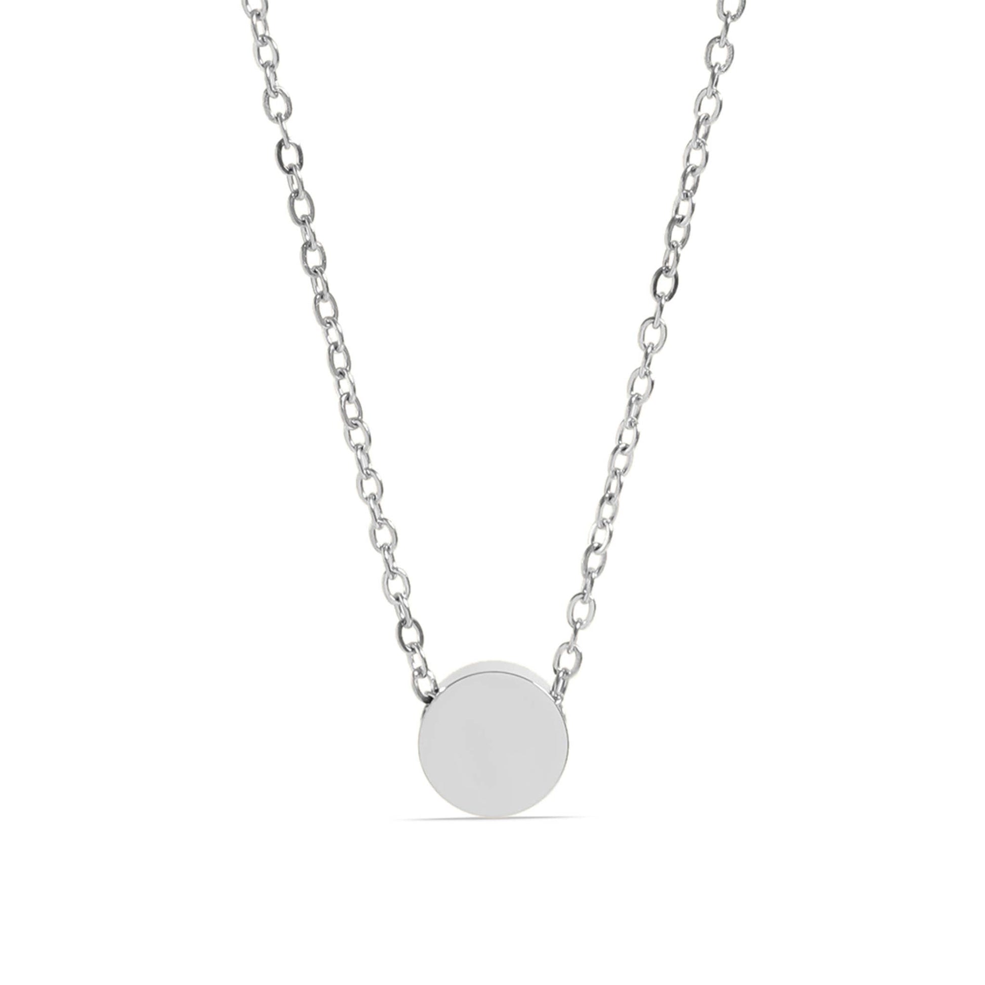 The Stainless Steel Mini Circle Necklace offers a minimal and sleek stylishness that is great for any occasion. Its circle-shaped charm and polished finish present a luxurious shine that is a must-have for customers of all ages. Includes a 1.5mm 18" loop chain and 9mm circle bead pendant ✦ 316L Surgical Grade Stainless Steel will never fade, tarnish, or turn skin green, even when worn in the ocean or pool. ✦ Hypoallergenic, so don't worry about any breakouts or rashes! Pendant Bead: 9mm in diameter Necklace Length: 18" Necklace Width: 1.5mm